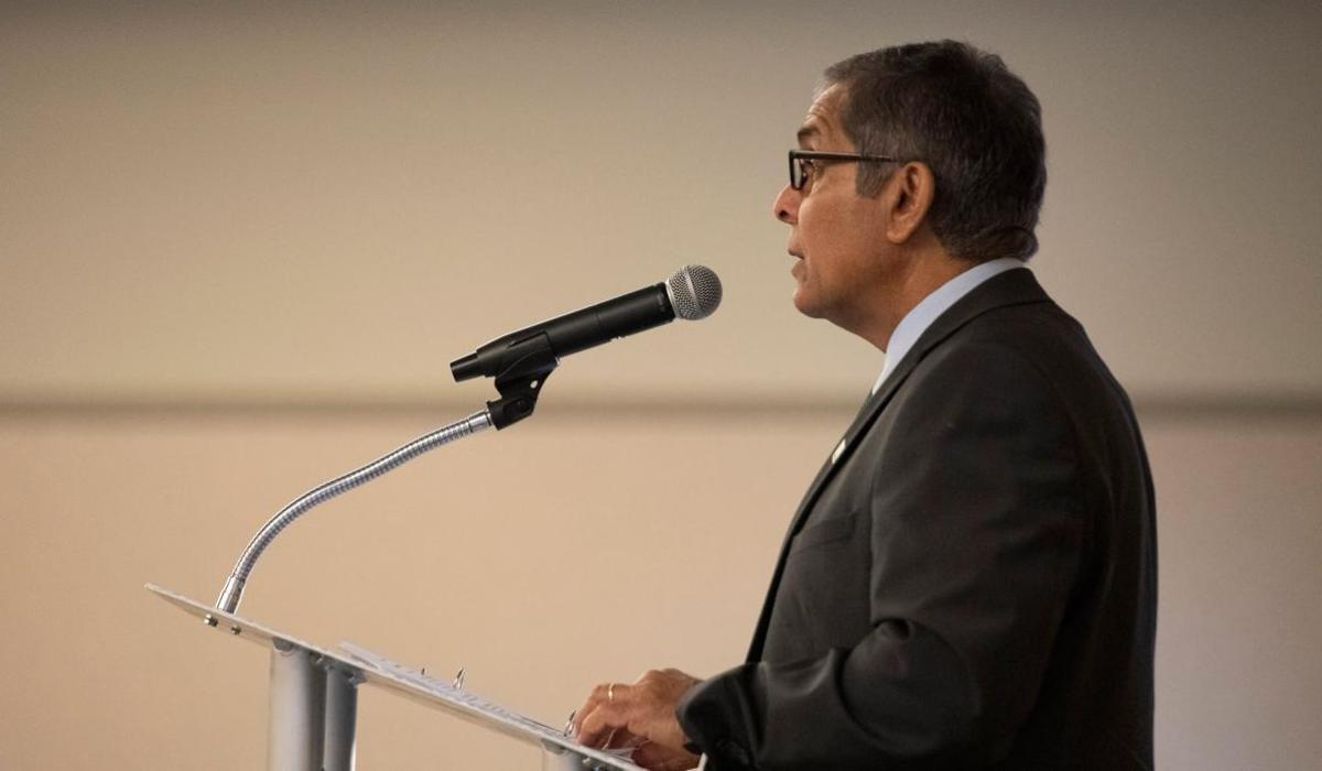 In what has become an annual tradition, Missouri S&T Chancellor Mo Dehghani reads a progress report in the form of a letter during the Kummer Day celebration.